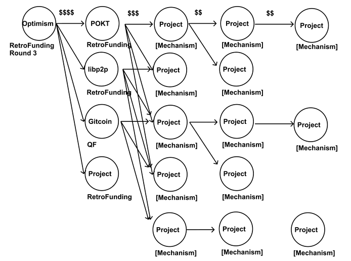 One example of an AlloNet in action is the Retro Funding ecosystem, driven by Optimism's $100m+ distribution to ecosystem public goods. Projects like libp2p and POKT received funds from OP Retro Funding and ran their own RetroFunding Rounds.